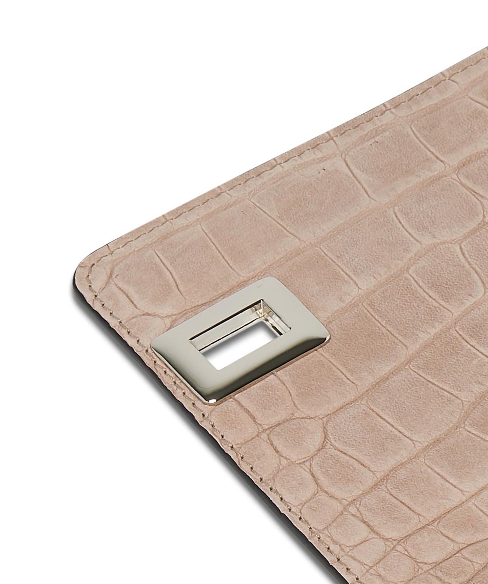 NABUK COCCO MAUVE printed leather panel with polished steel finishes.