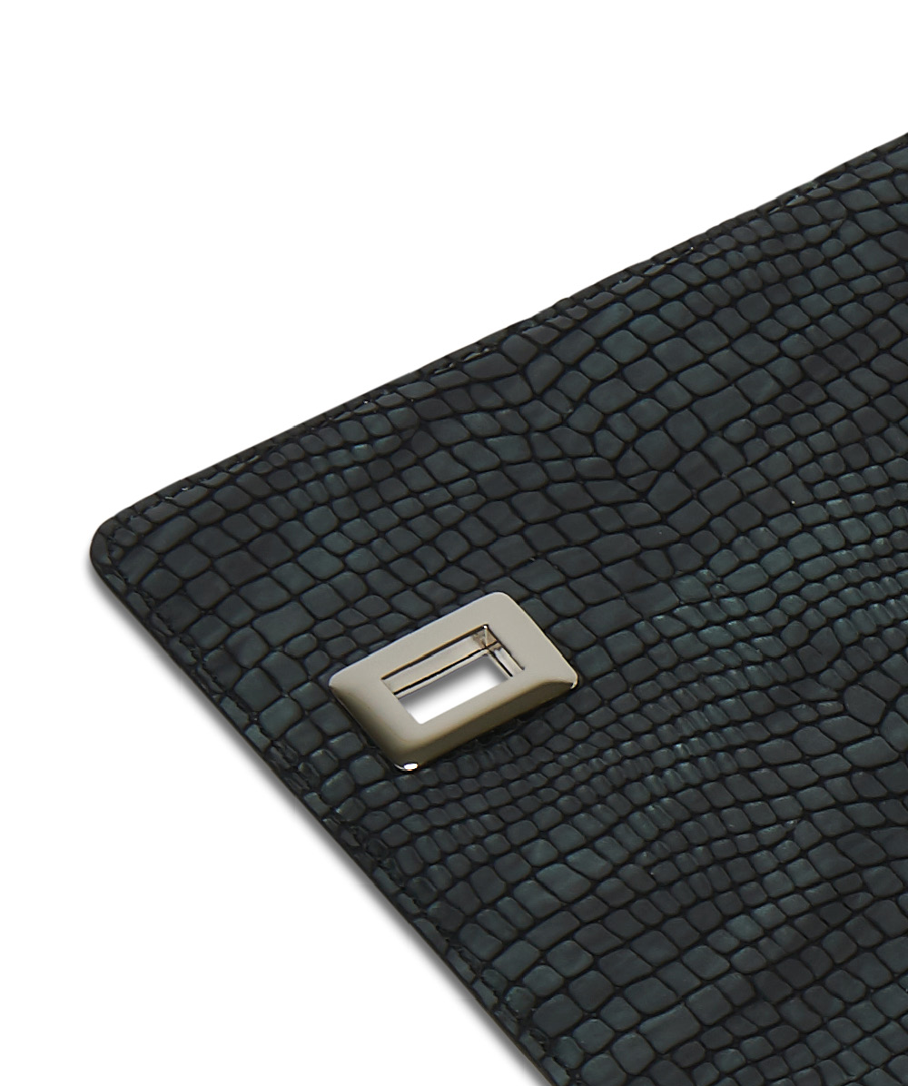 NOCTURNAL LIZARD printed leather panel with polished steel finishes.