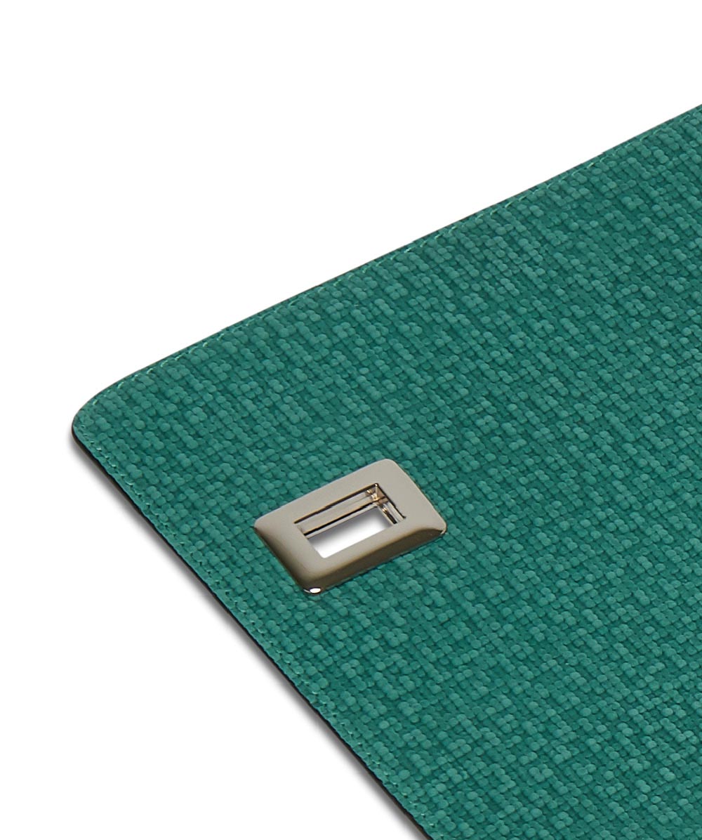 PIXEL GREEN braided leather panel with polished steel finishes.