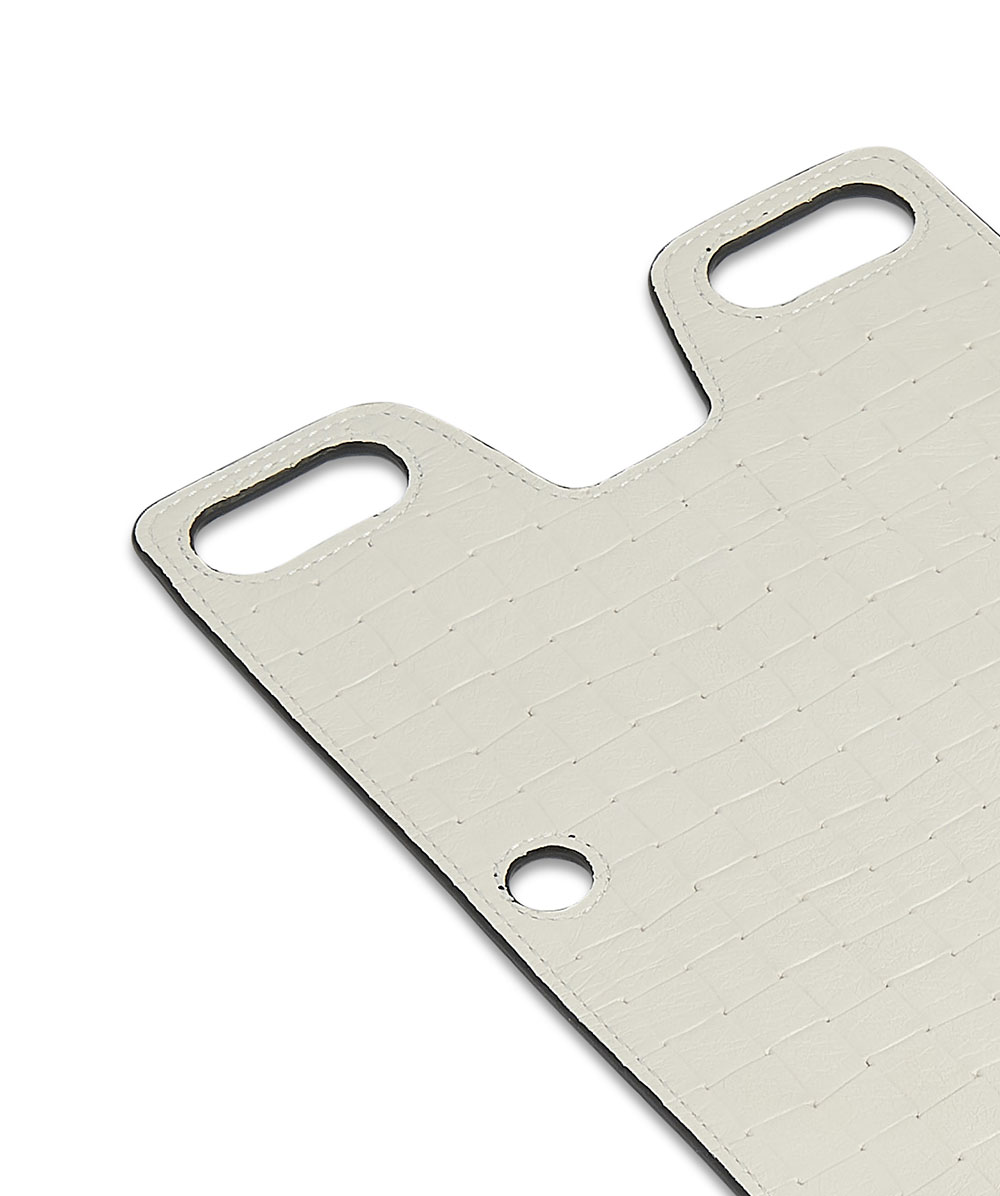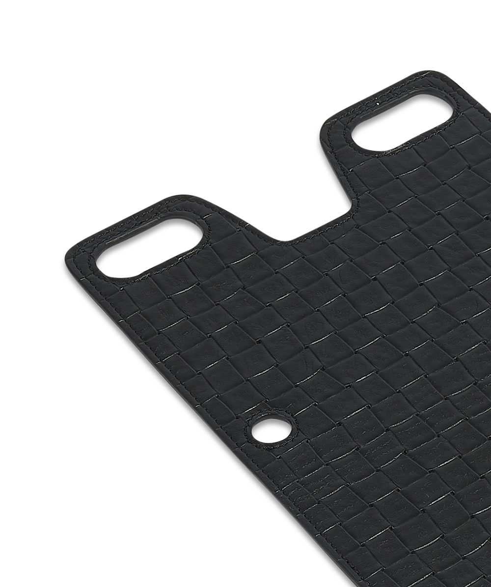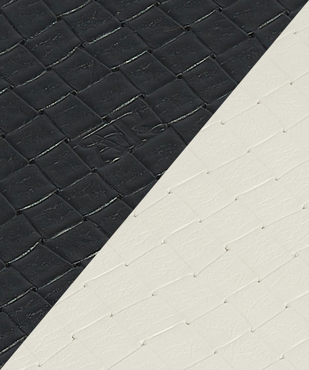 Pannello double face in pelle di vitello stampata GESSO STAMP GREEN/NERO ST GREEN con otto passanti per applicazione su borsa. Fatto a mano in Italia.